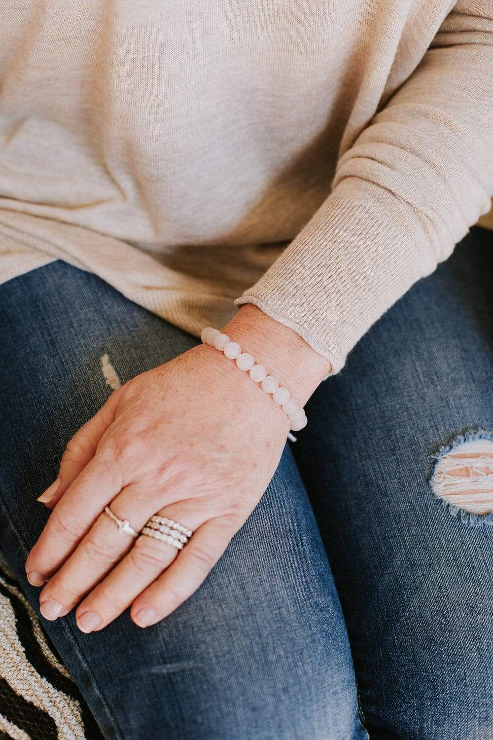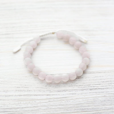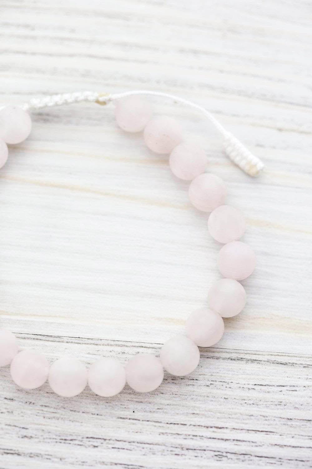 • An essential DharmaShop wrist mala, we absolutely love the style and simplicity of this design.  Handmade in Nepal, it features matte rose quartz gemstone beads.