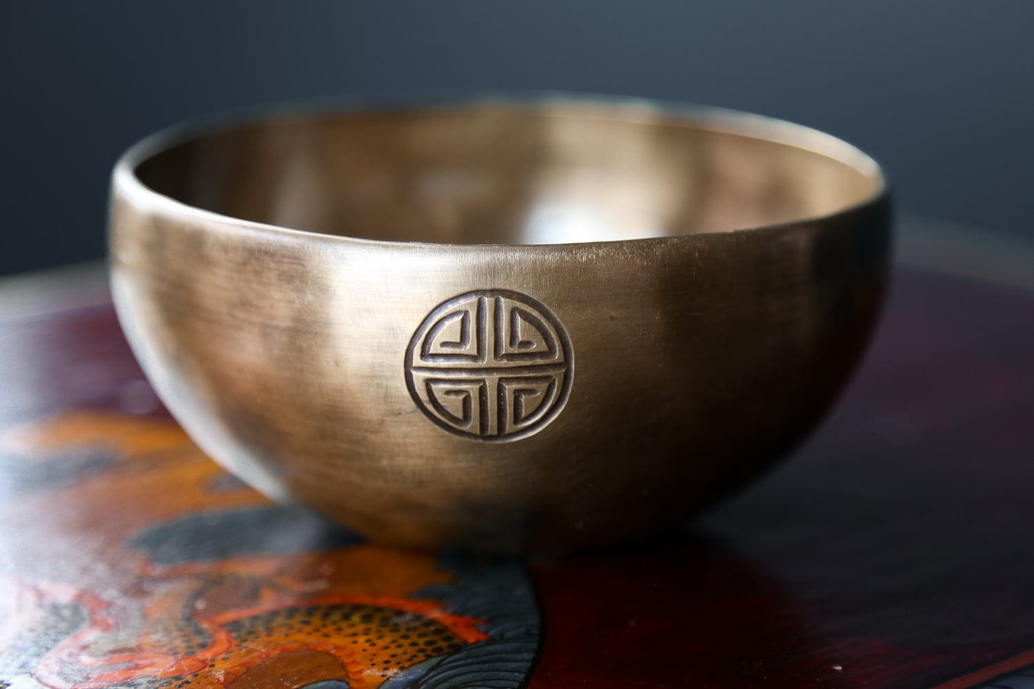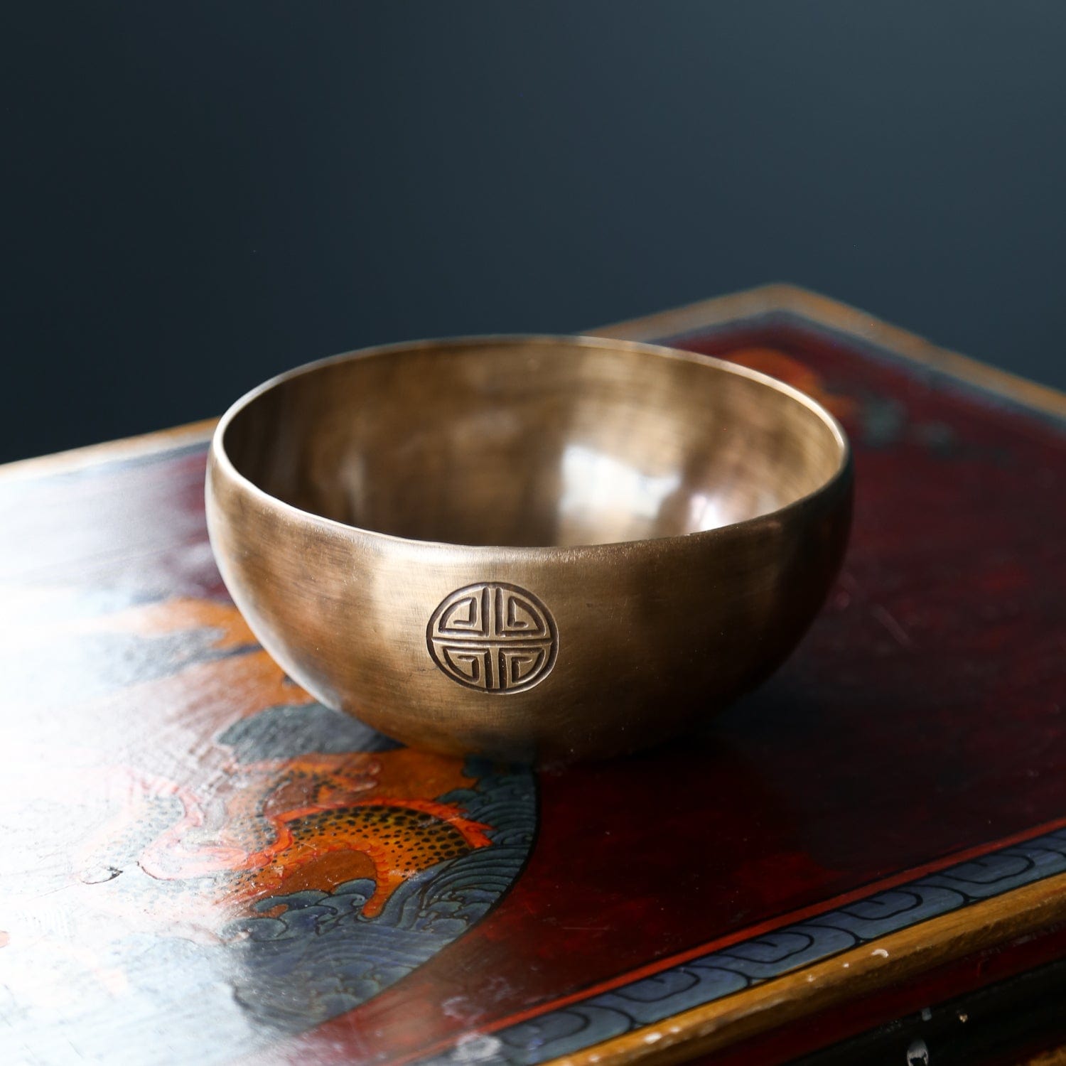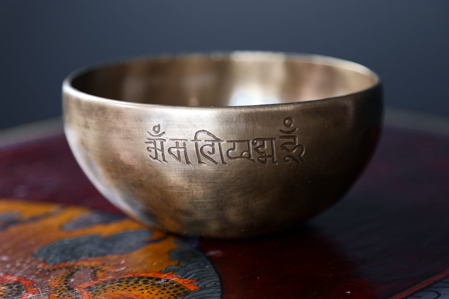 Each bowl features gorgeous hand carved details including an exclusive full moon singing bowl stamp and the mantra of compassion in Tibetan script.