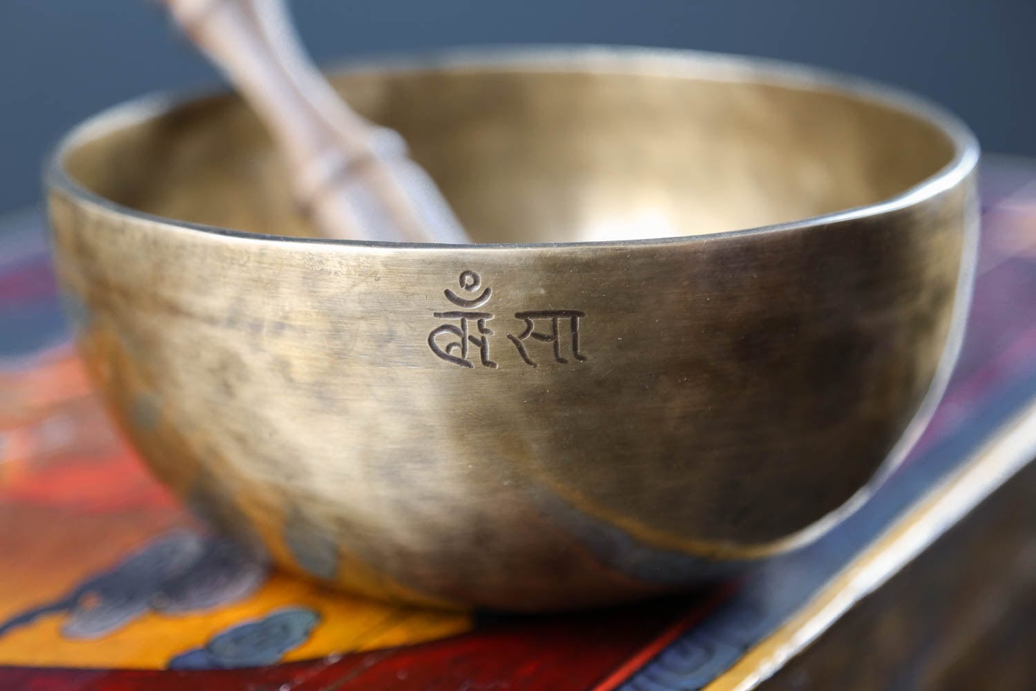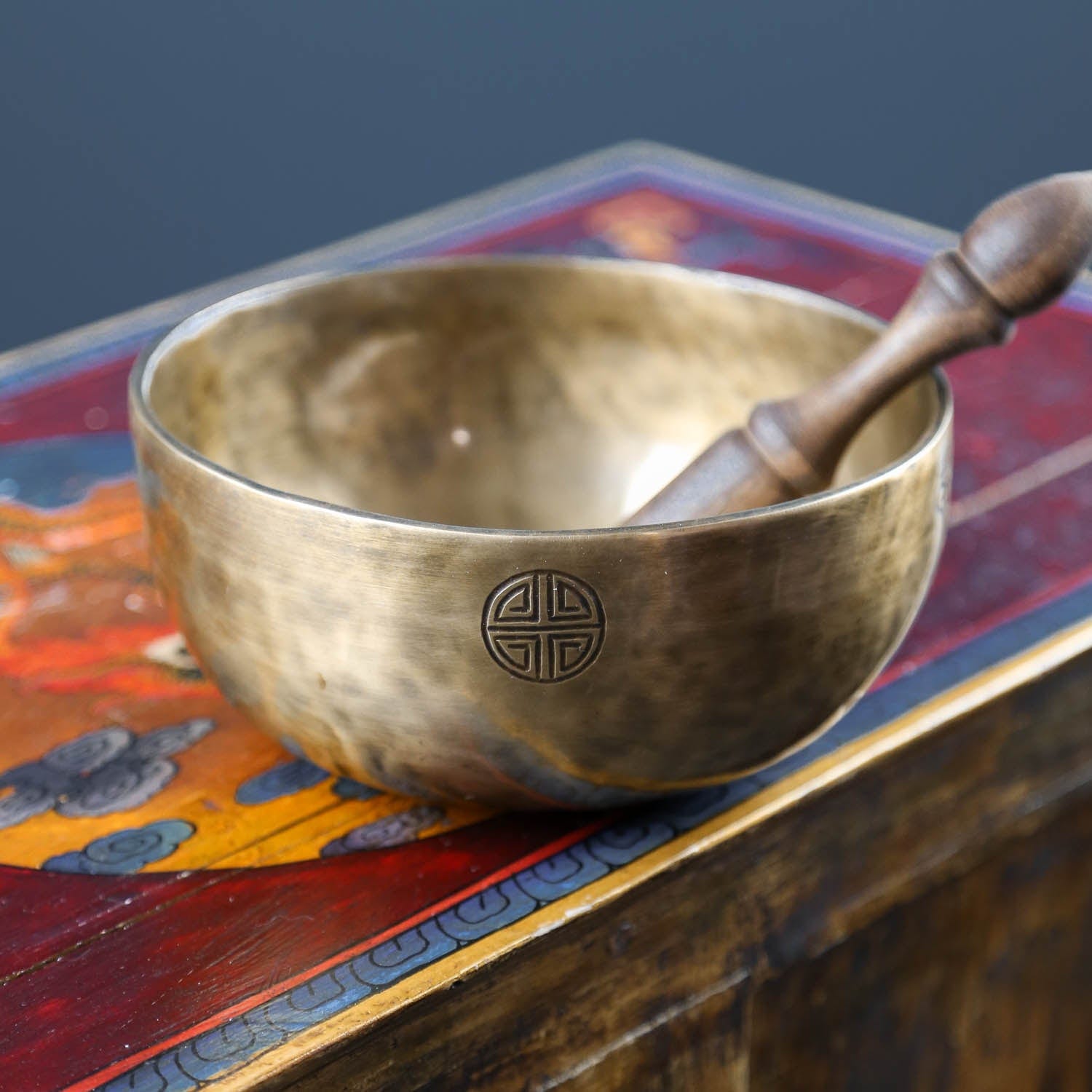 Each bowl features gorgeous hand carved details including an exclusive full moon singing bowl stamp, an original makers mark, and the mantra of compassion in Tibetan script.