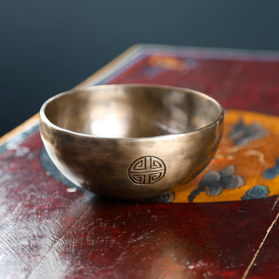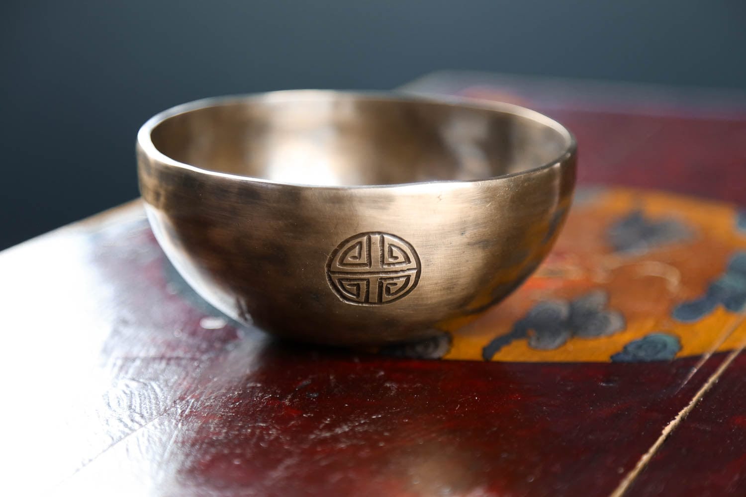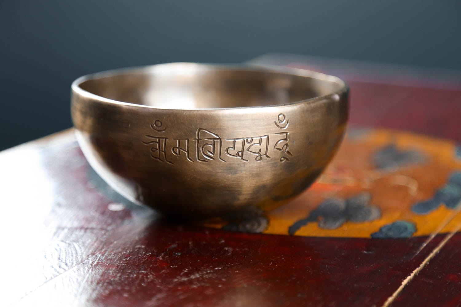 Each bowl features gorgeous hand carved details including an exclusive full moon singing bowl stamp and the mantra of compassion in Tibetan script.