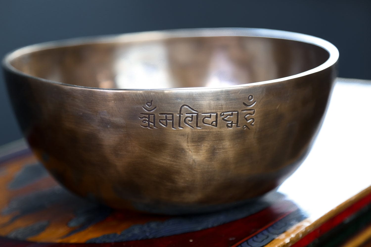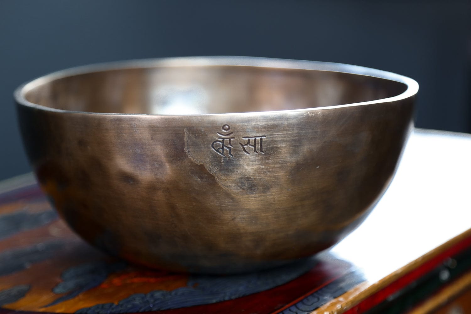 Each bowl features gorgeous hand carved details including an exclusive full moon singing bowl stamp, an original makers mark, and the mantra of compassion in Tibetan script.