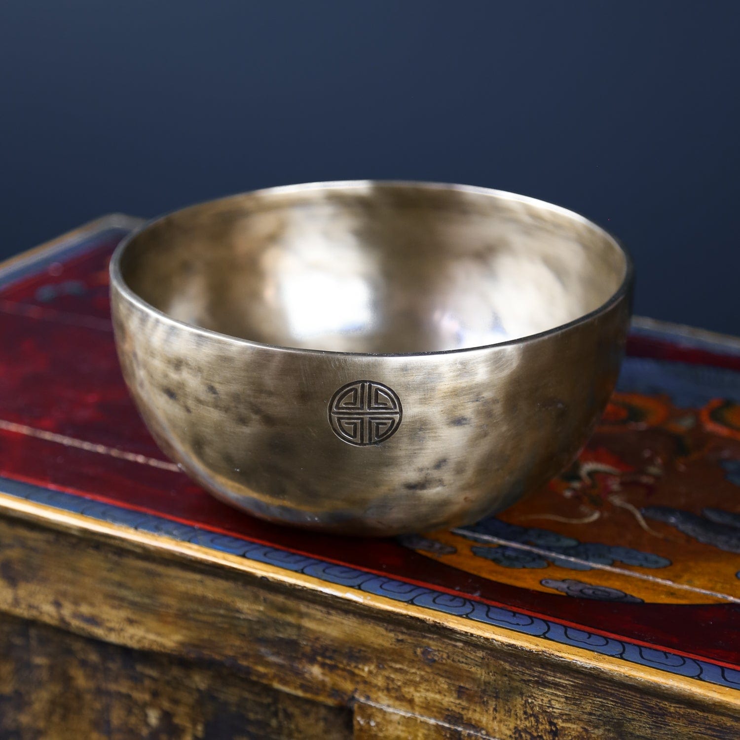 Each bowl features gorgeous hand carved details including an exclusive full moon singing bowl stamp, an original makers mark, and the mantra of compassion in Tibetan script.