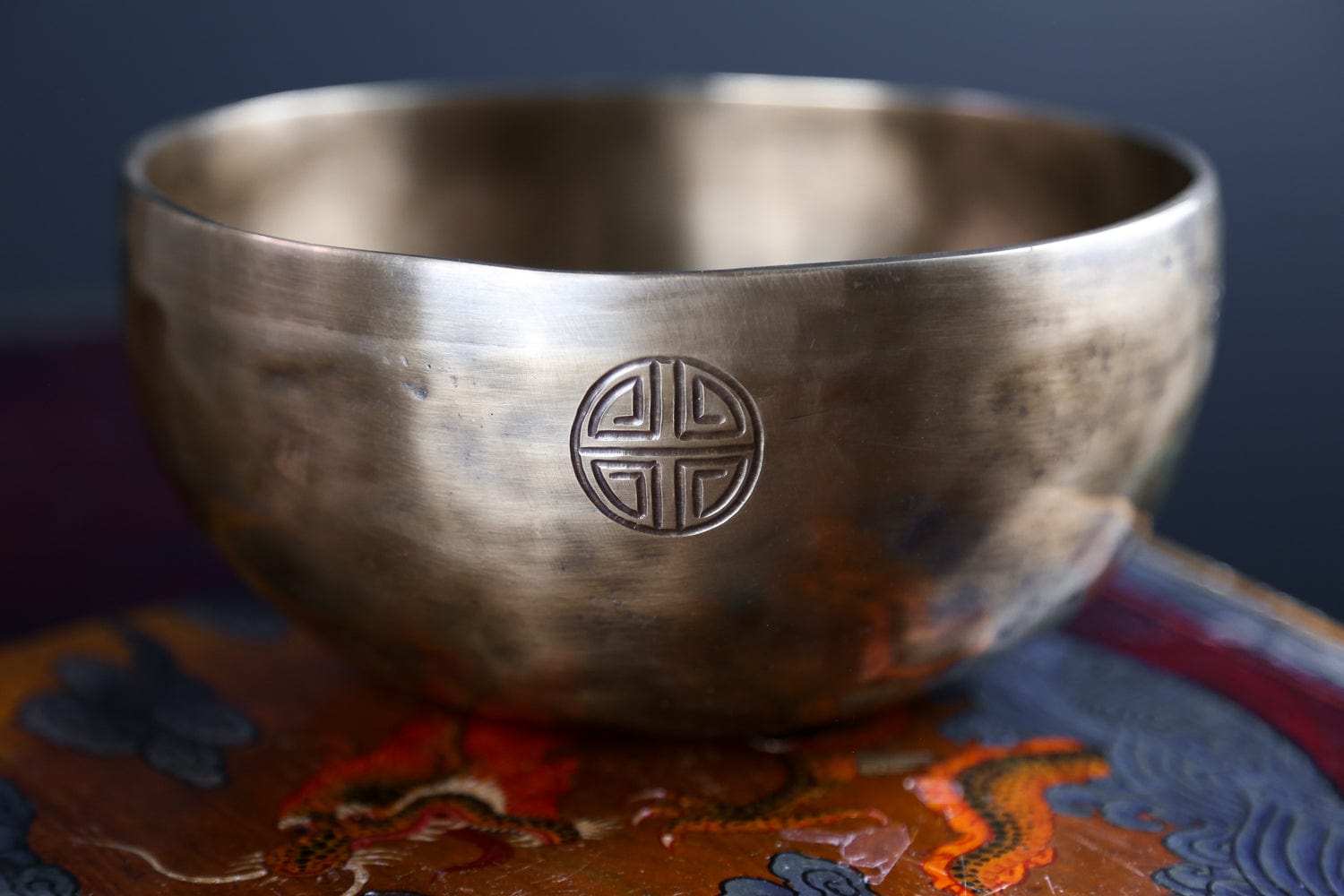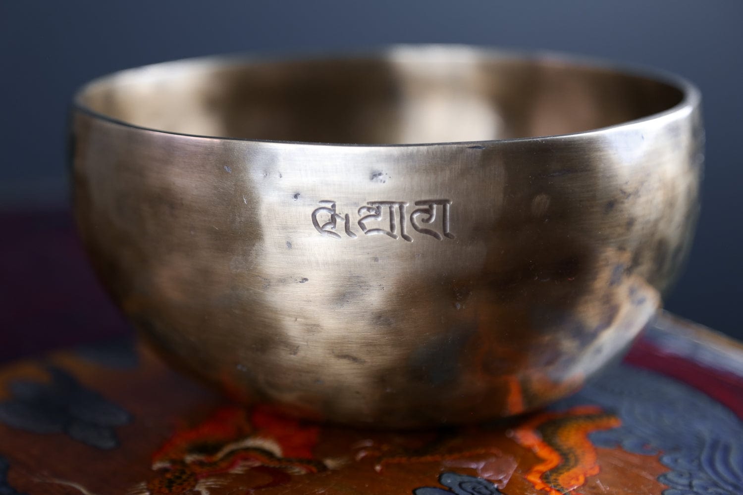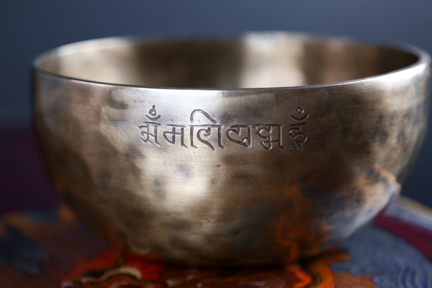 Each bowl features gorgeous hand carved details including an exclusive full moon singing bowl stamp, an original makers mark, and the mantra of compassion in Tibetan script.