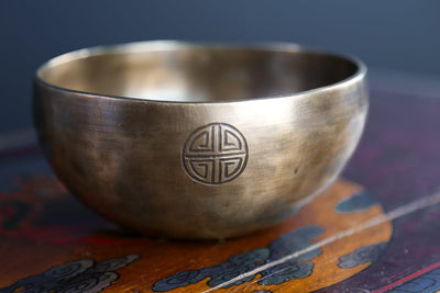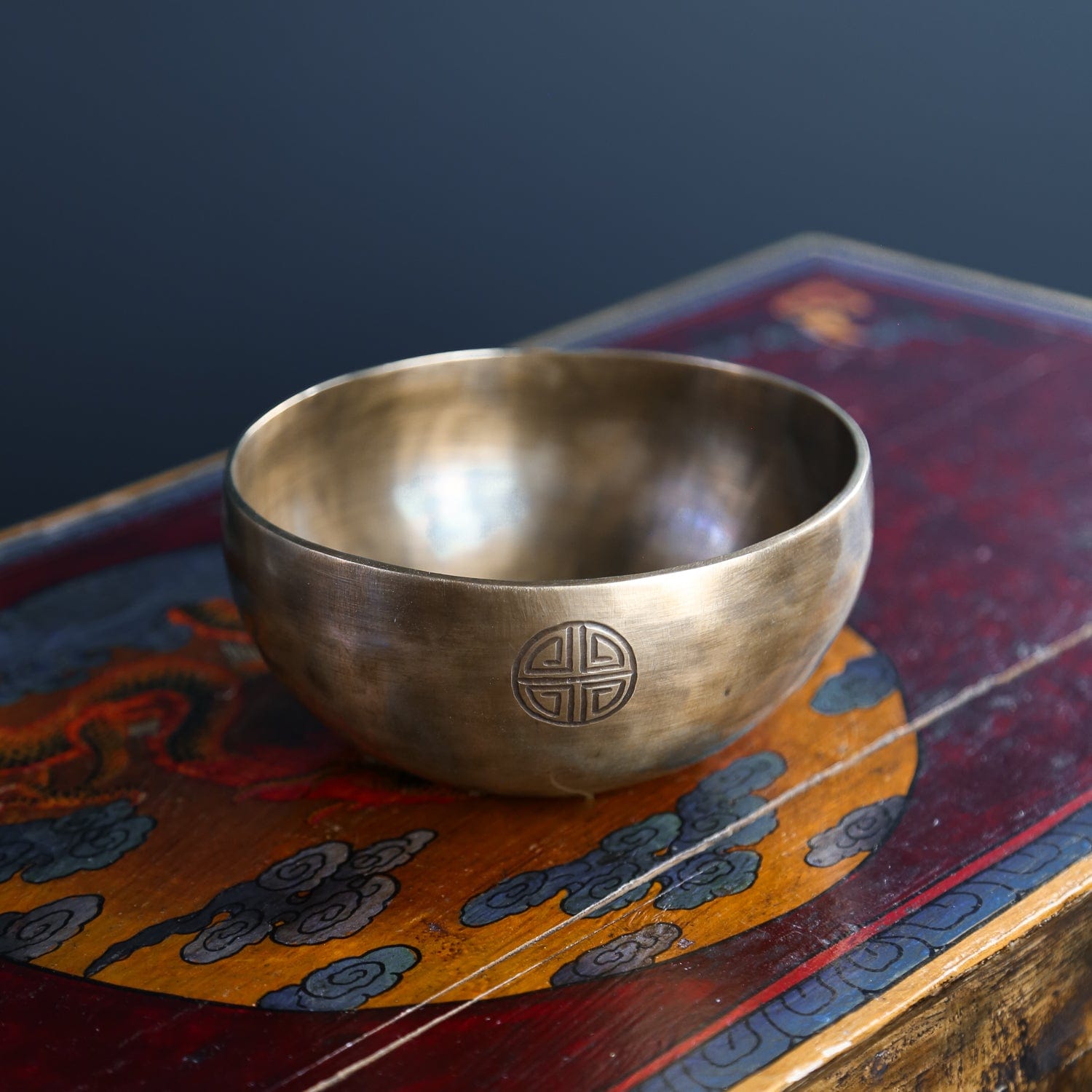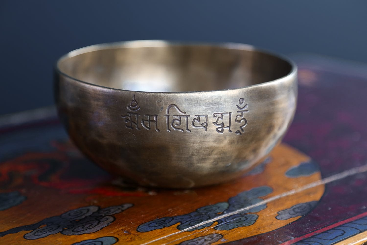 Each bowl features gorgeous hand carved details including an exclusive full moon singing bowl stamp and the mantra of compassion in Tibetan script.