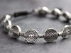 Adjustable bracelet measures approximately 6.5 inches around when fully tightened and opens to about 10 inches.  Spiral beads are 10mm.