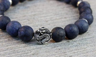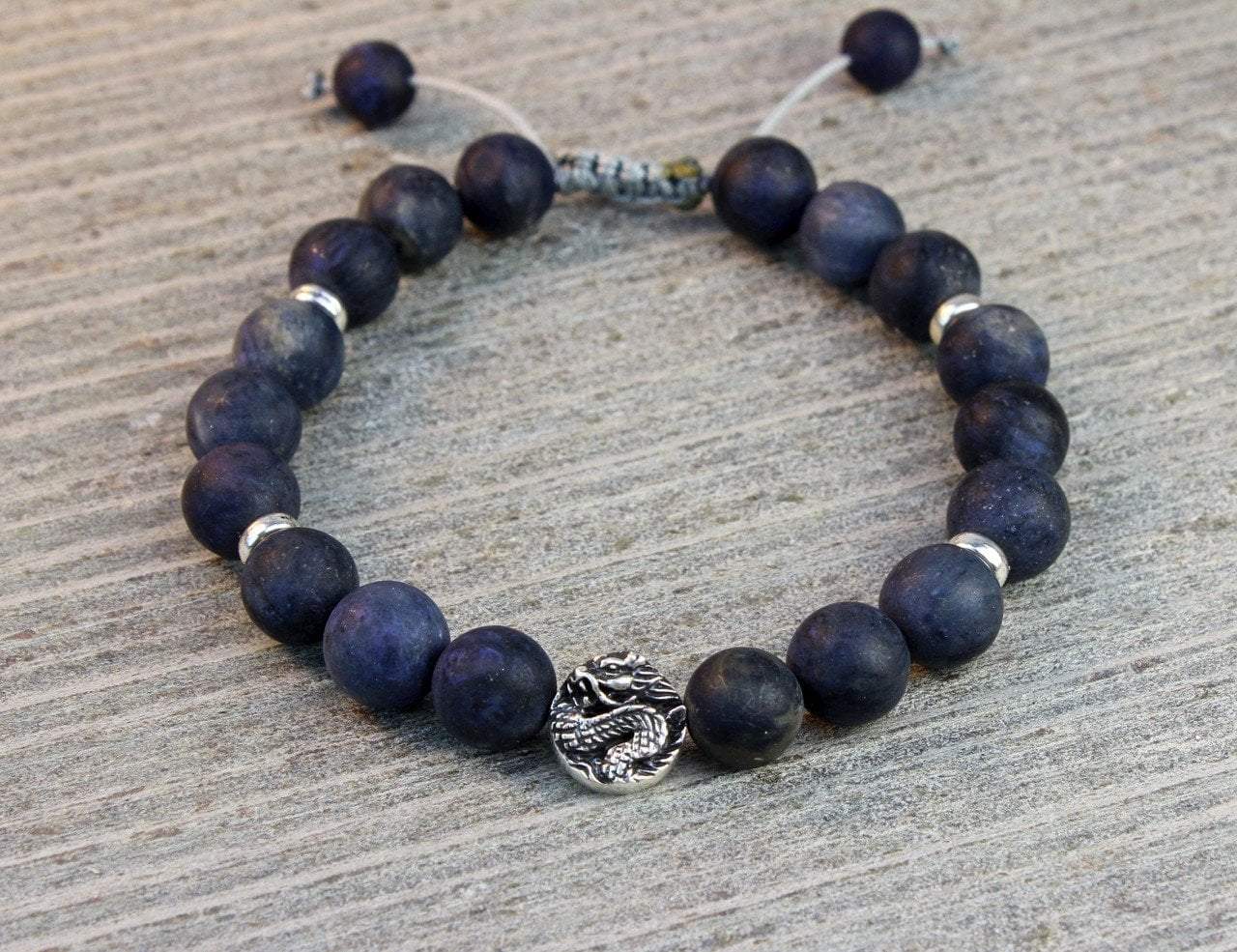 Size:10mm matte beads, dragon spacer bead measures approx 10mm also. When fully open, wrist mala measures approx 9 inches and will adjust to 7 3/4 inches when fully closed.