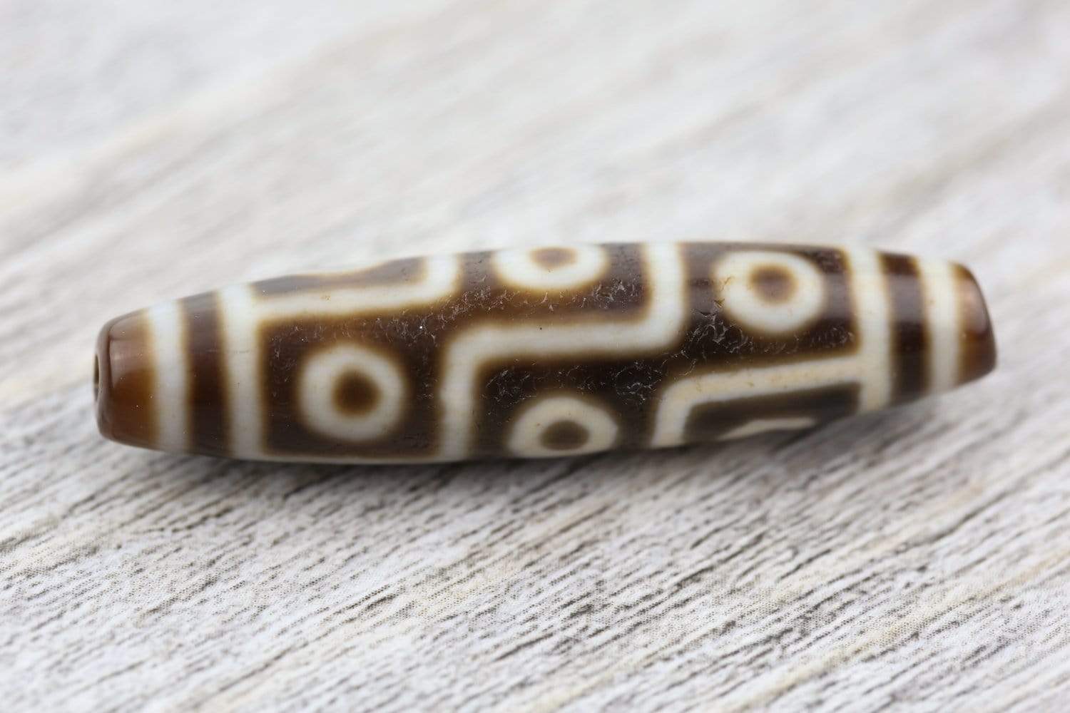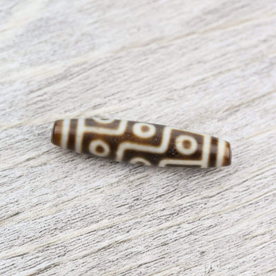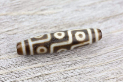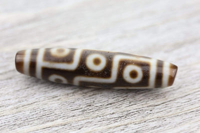 The 9-Eyed Dzi bead assists its owner in gathering wealth, achieving good health and success, as well as gaining power, compassion, and glory. It is a mystical bead that acts as a protector, expelling evil. 9-Eyed Dzi is one of the most sought after, believed to represent the nine planetary systems and its essence.