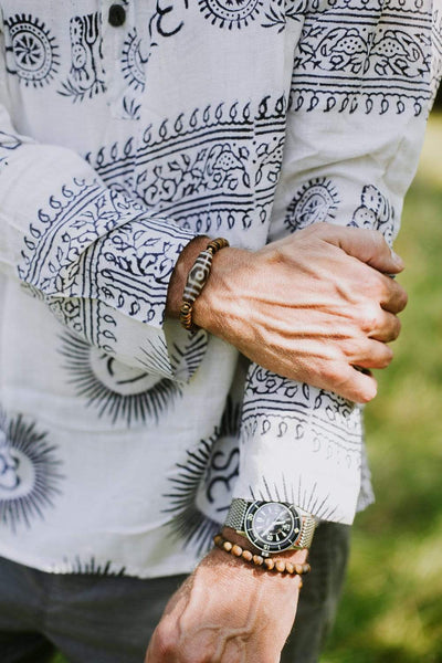 A note about bone usage: In the Himalayas, it is typical for large animals such as yak or water buffalo to be used for service, food, clothing, and ritual items. Given the limited amount of resources and the religious practices of the people in the region, it is important that none of the animal goes to waste. These amazing bone beads are handcrafted by artisans who recycle and reuse everything in daily life and spiritual practice.