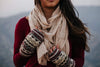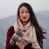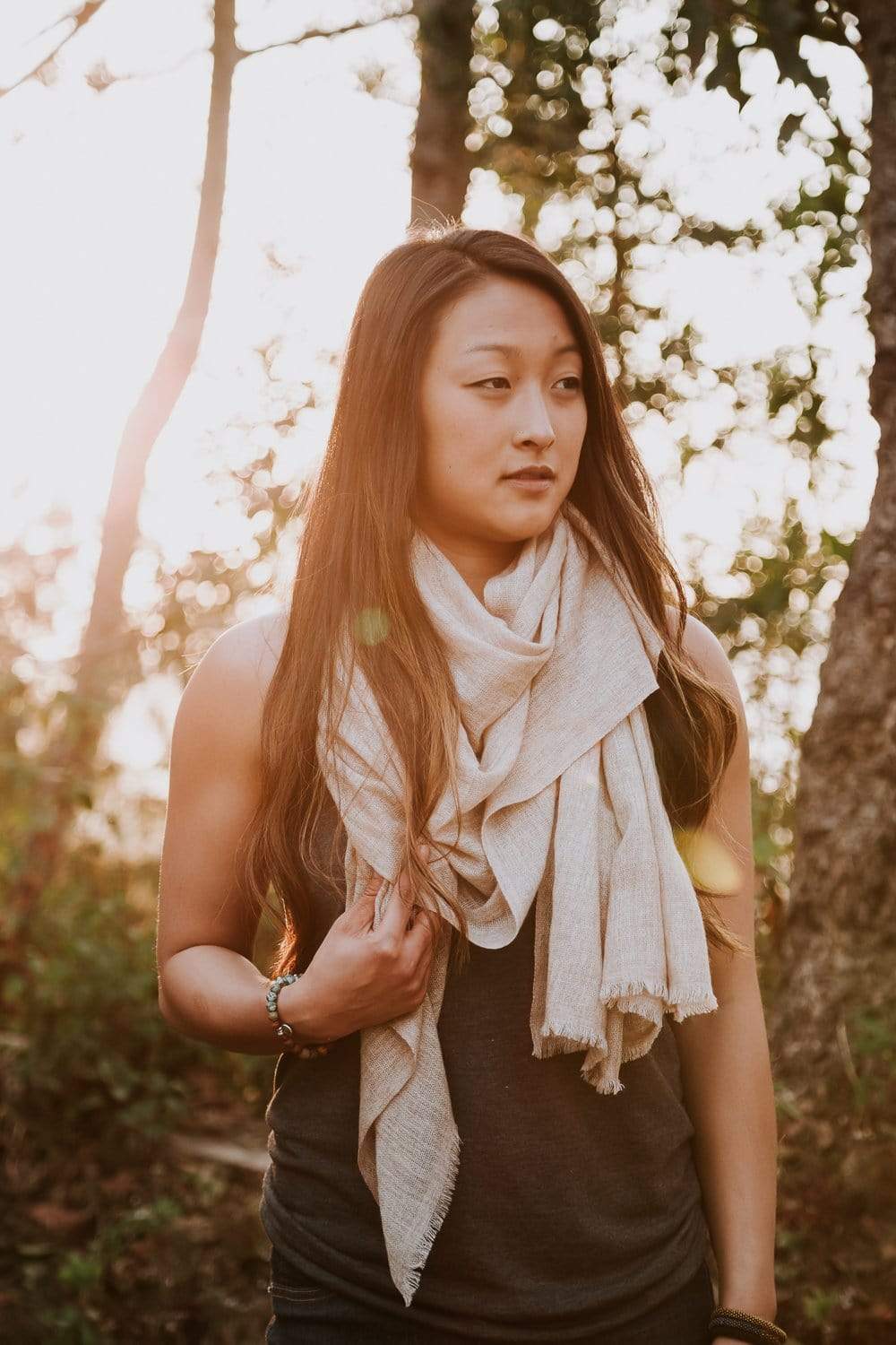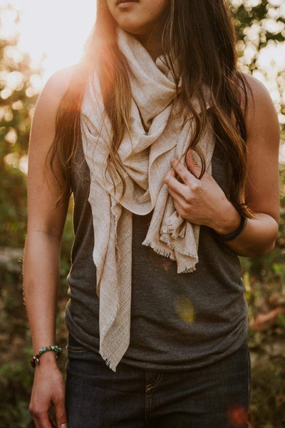 An exquisitely soft and cozy 100% cashmere spring or fall scarf from Kathmandu, Nepal. Beautiful natural light tan color. Includes the very popular fine quality natural fringe. Cashmere shawls have been manufactured in Kashmir and Nepal for thousands of years and were popularly called Kashmiri wool shawls.