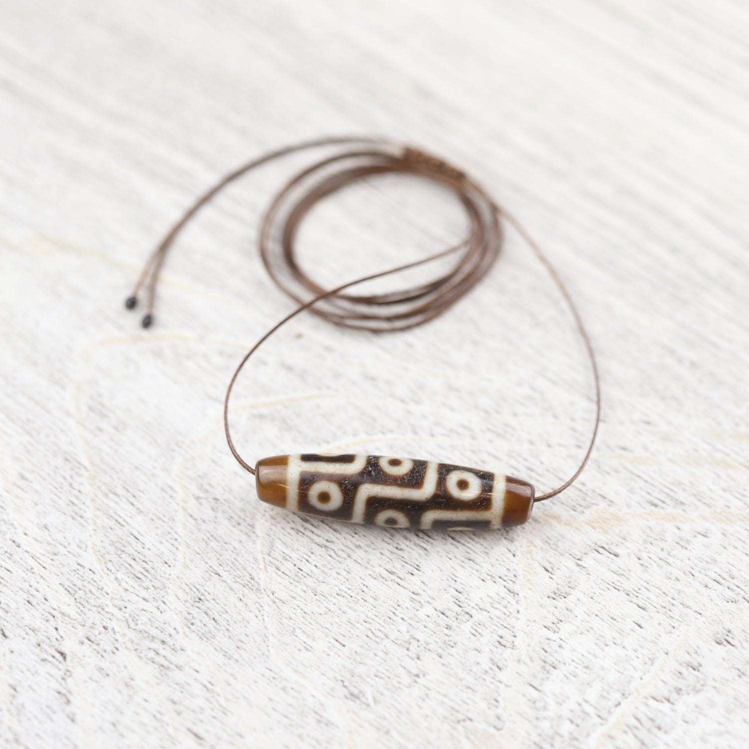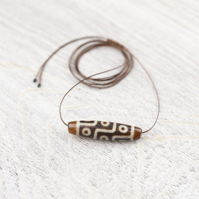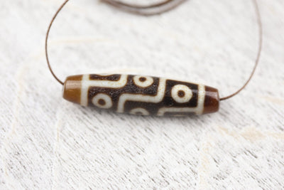The Nine-Eyed Dzi bead assists its owner in gathering wealth, achieving good health and success, as well as gaining power, compassion, and glory. It is a mystical bead that acts as a protector, expelling evil. Nine-Eyed Dzi is one of the most sought after, believed to represent the nine planetary systems and its essence.