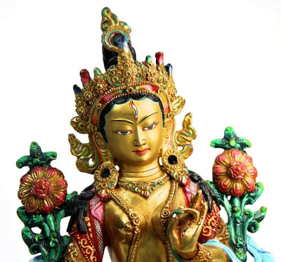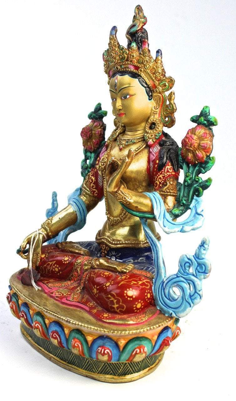 This is a one of a kind master work. We are the sole distributer of Meenu Shakyas work in the USA. These statues are made over a 6 to 12 month process involving casting, creating wax molds, making plaster molds, pouring bronze into molds and then hand detailing before the finishing artists even see the statues. We are so proud to support traditional artists and this is one of the true master works.
