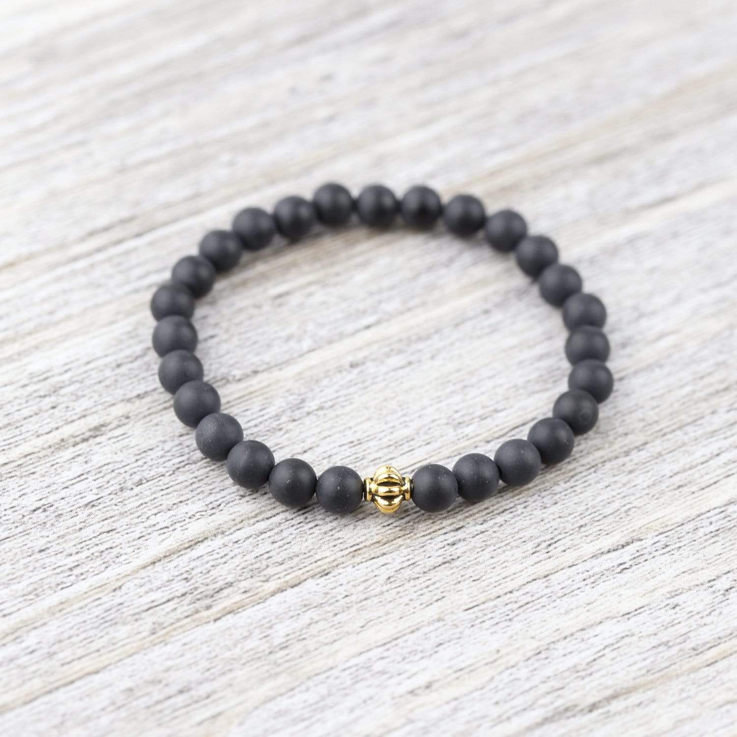 Onyx is worn to defend against negative energy that is directed at you; it strengthens self confidence and responsibility. Onyx also alleviates worry, tension, and nervousness and eliminates confusion and nightmares. It stabilizes, heals, and strengthens your Root Chakra so you may become more grounded and productive.