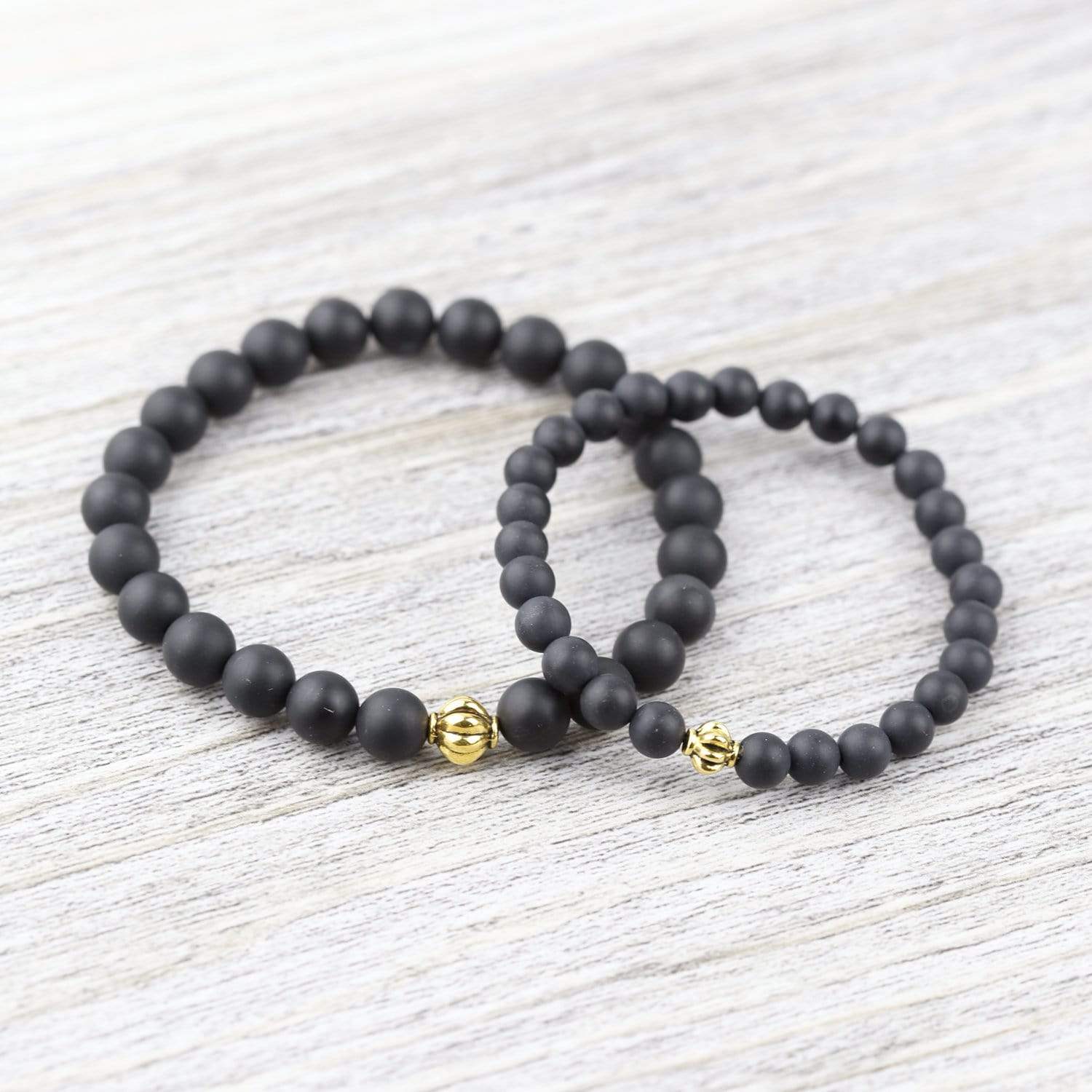 Bracelet is strung on stretchy cord and available in two sizes. Small measures approximately 6.25 inches around with 6mm beads. Large measures approximately 7.25 inches around with 8mm beads.