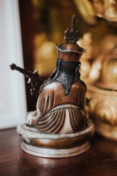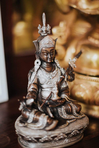 Padmasambhava, also called Guru Rinpoche, is known as a character of literature and knowledge. Padmasambhava was a historical teacher who is said to have finally converted Tibet to Buddhism. He was a renowned scholar, meditator, and magician, and his mantra suggests his rich and diverse nature.