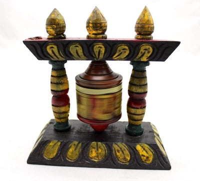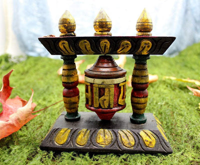 hand Carved and Painted in Nepal. Temples in Nepal and Tibet have hundreds of these hand carved prayer wheels. They are turned clockwise and contain prayers inside the wheel to multiply the prayers with each turn. Back in Stock!!