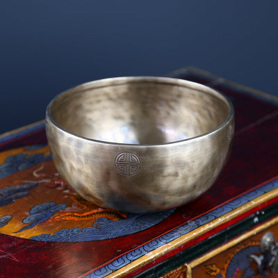 Bowl rings at a G# note when struck with a woolen mallet. This note resonates with the Throat Chakra. It influences communication, dreaming, artistic expression, good judgment, self-belief, wisdom, and truthfulness. When the Throat Chakra is balanced, it allows for free communication, helping us to feel centered and happy.