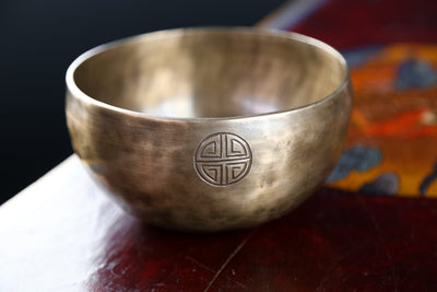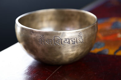 Each bowl features gorgeous hand carved details including an exclusive Full Moon Singing Bowl stamp and the mantra of compassion in Tibetan script.