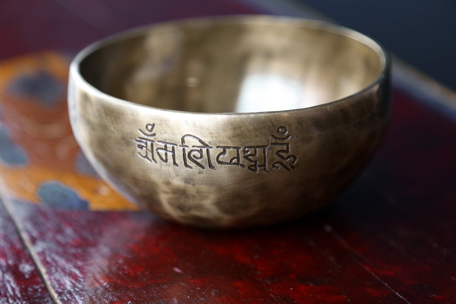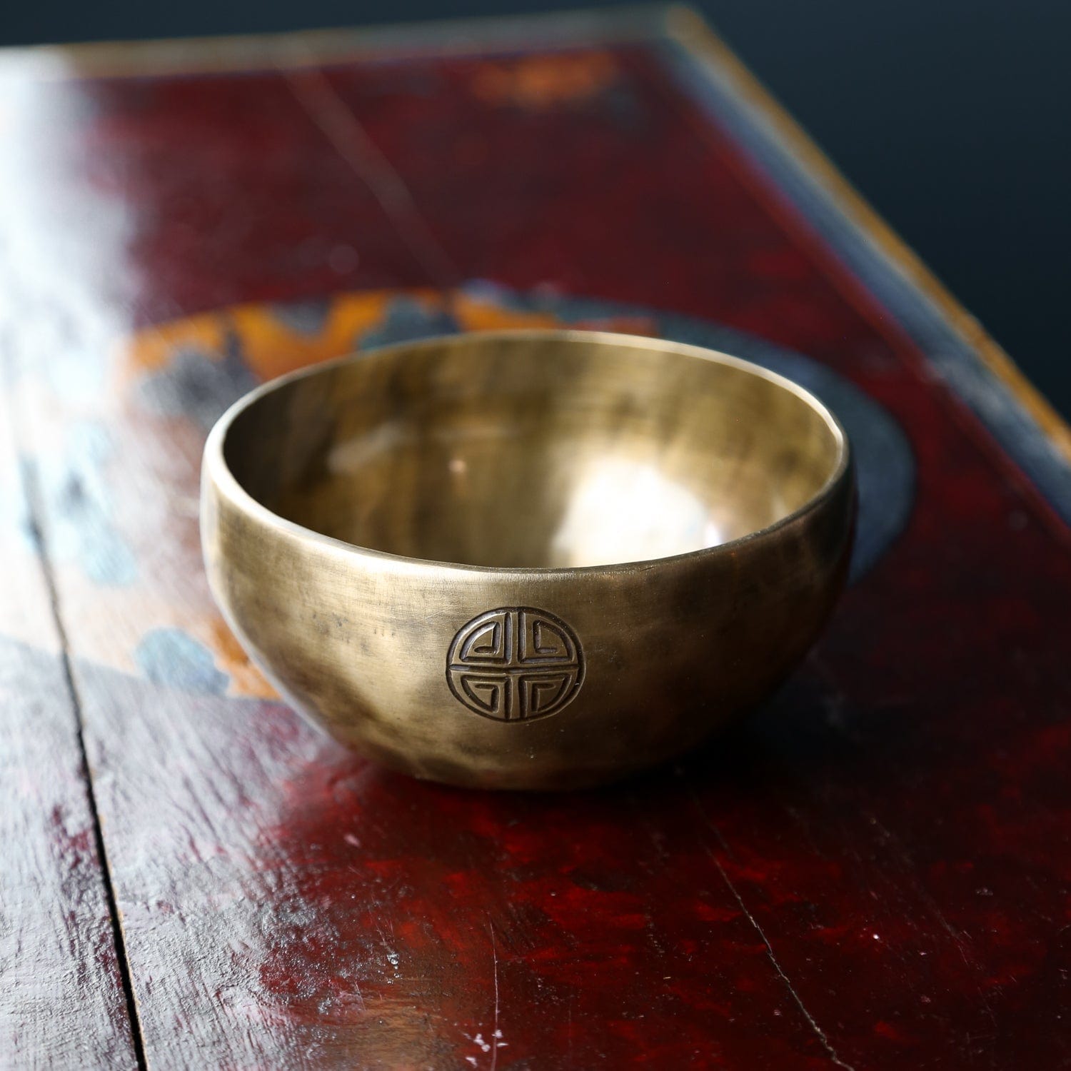 Each bowl features gorgeous hand carved details including an exclusive Full Moon Singing Bowl stamp and the mantra of compassion in Tibetan script.