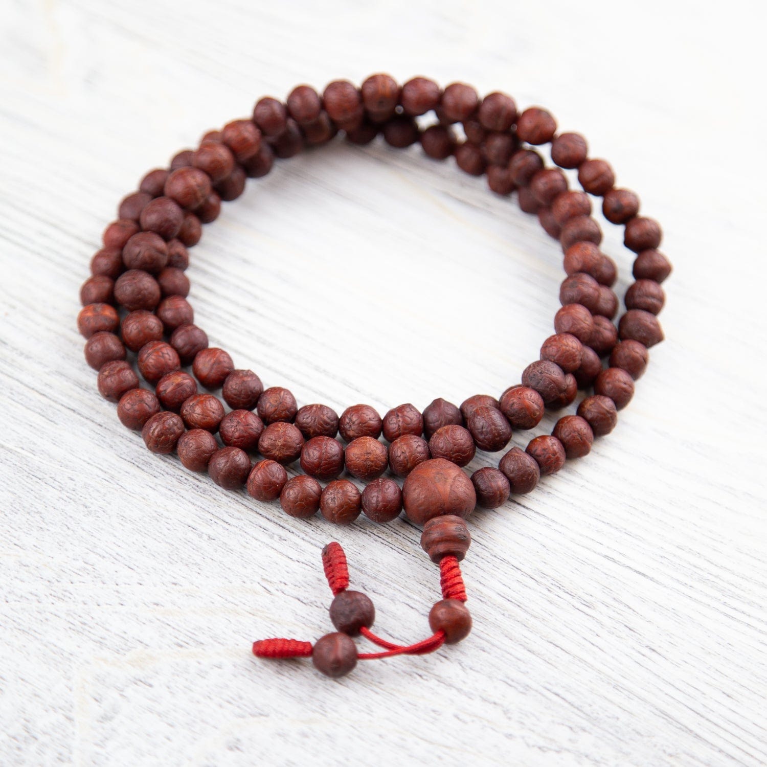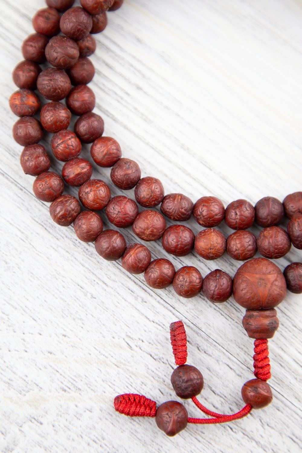 This mala comes from our DharmaShop curated collection. It was hand selected from an antique bodhi seed seller just outside of the Boudhanath temple. The bodhi seeds originate from the Kavrepalanchok District, one of the only places in Nepal to produce bodhi seeds! This seller and her family have been involved in the bodhi seed trade for generations. Kavrepalanchok is also the hometown of the head of our DharmaShop Nepal team!