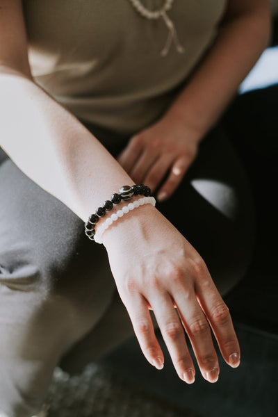 Small bracelet measures about 6.25-6.5" around. Large is about7-7.25" around.Beads are about 6mm on stretchy cord.