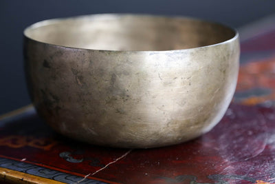 Each time we're able to get a small collection of these bowls is exciting as they are exceptional. Antique Tibetan singing bowls like this one are highly sought after for their remarkable quality sound, rich tones, and unique physical characteristics. Every handmade mark tells a story of the bowls history!