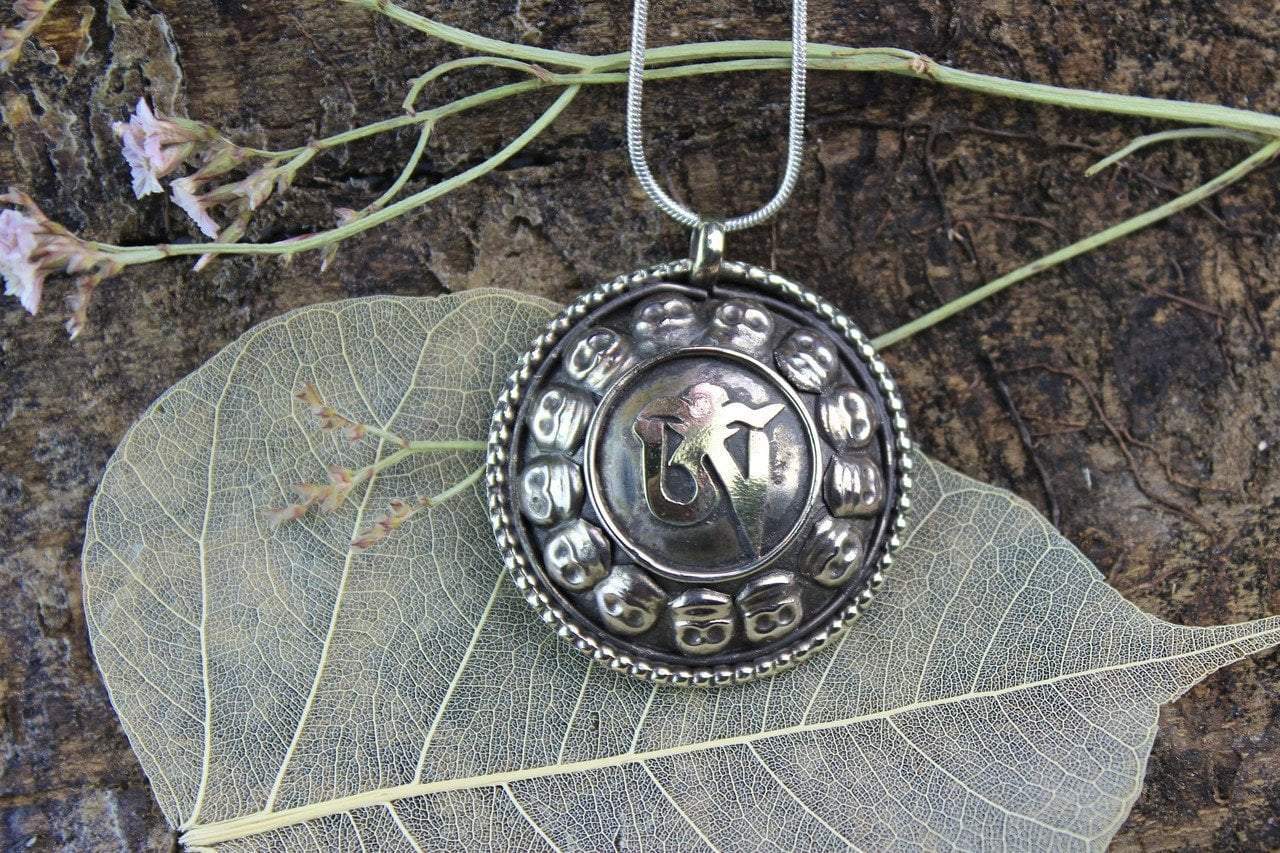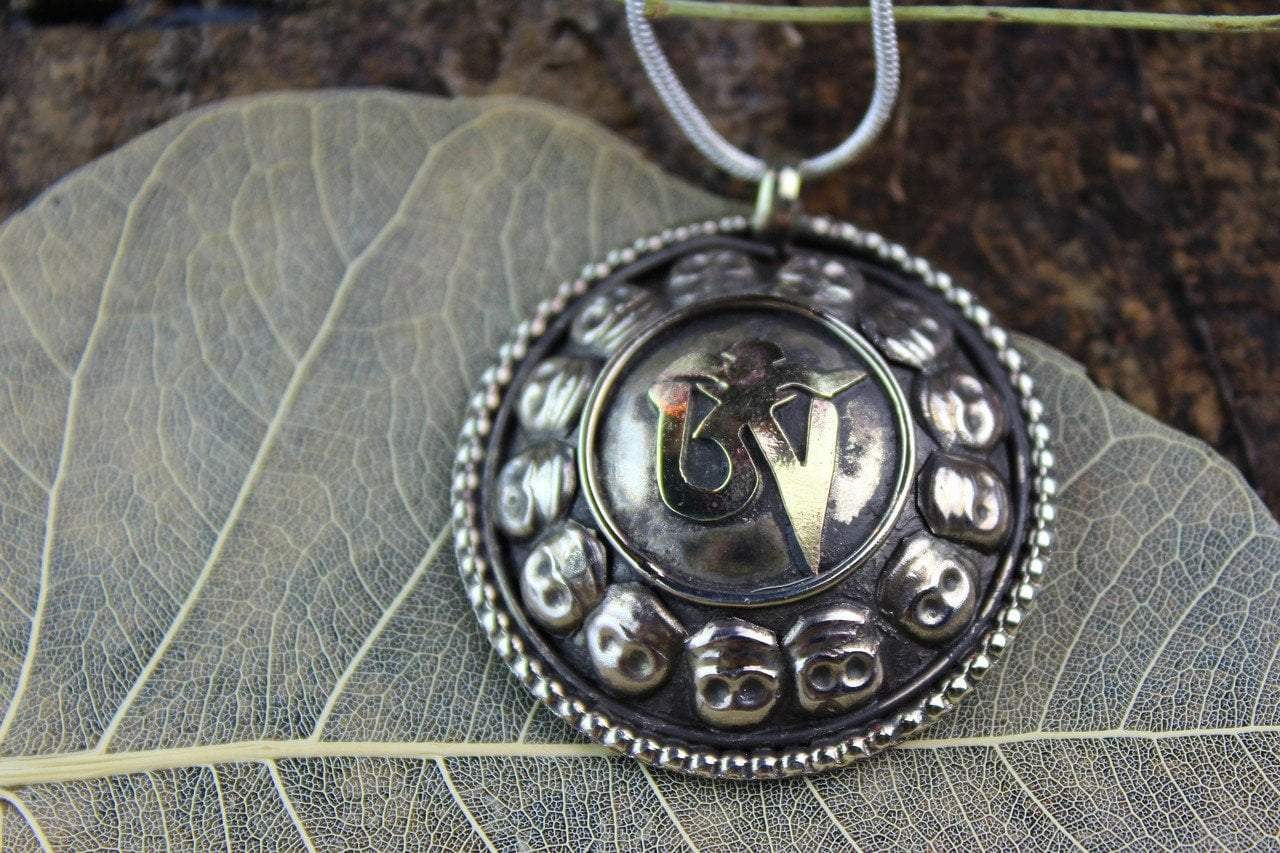 Lightweight, bronze om and skulls pendant