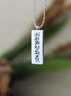 .925 sterling silver pendant strung on a 16 inch chain with a sterling clasp. Pendant is 1 inch long.