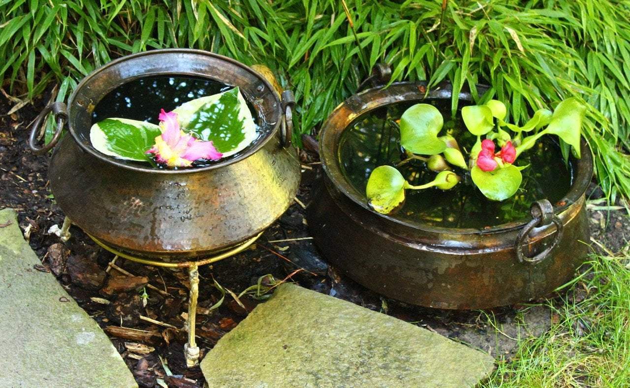 These impressive, hand hammered copper pots are perfect for storing fire wood, plants or beautiful water gardens.