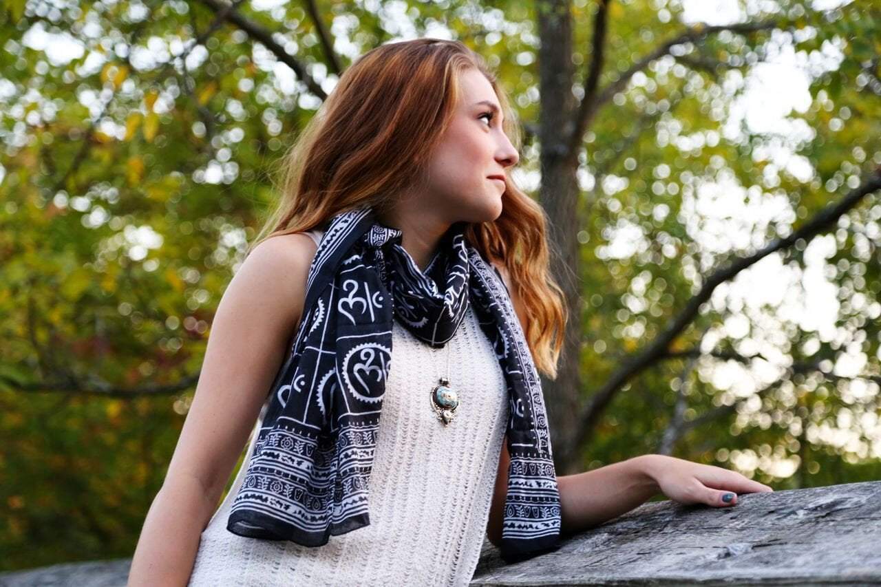 Our new Om design scarf is 100% cotton and a perfect lightweight scarf for the spring and fall!