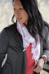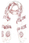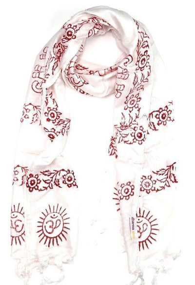 Our popular OM design prayer scarves got a little smaller and we added hand tied fringe for a more finished and sophisticated look.