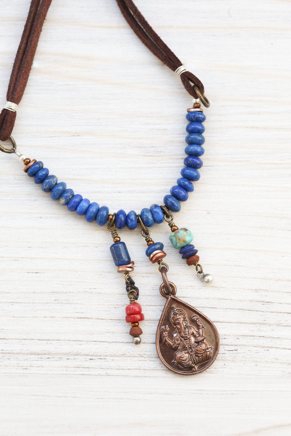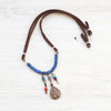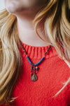 Necklace measures approximately 16-18 inches around on vegan leather cord. Amulet hangs about 1.75 inches.