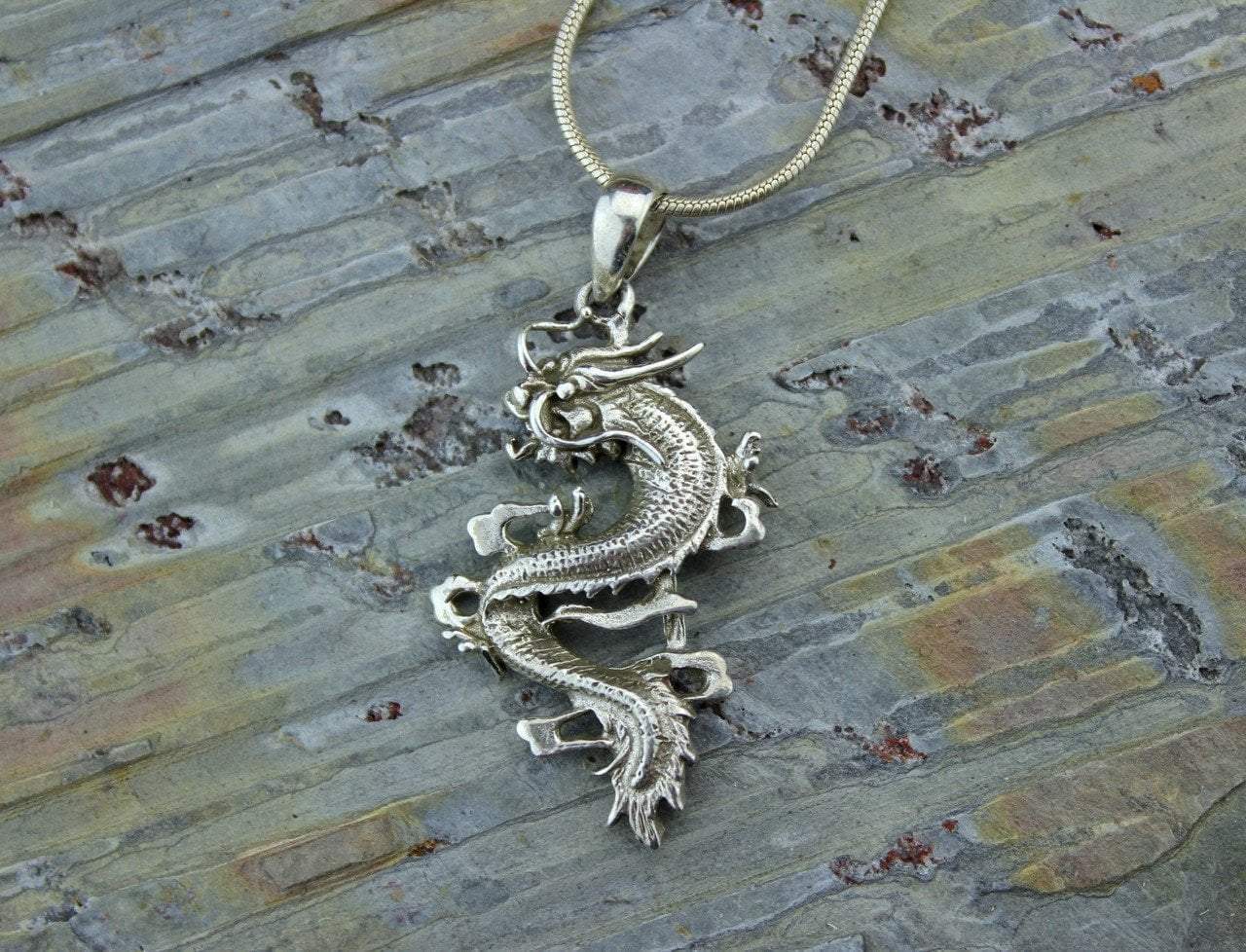 An amazingly detailed sterling silver dragon pendant.