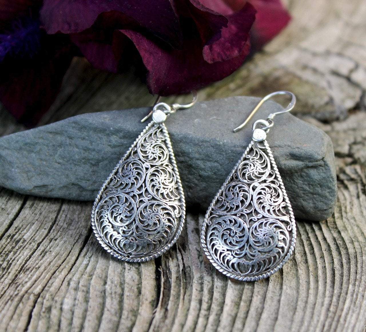 These alluring hand carved teardrop sterling silver earrings are a great accessory to any outfit! Handmade in Nepal.