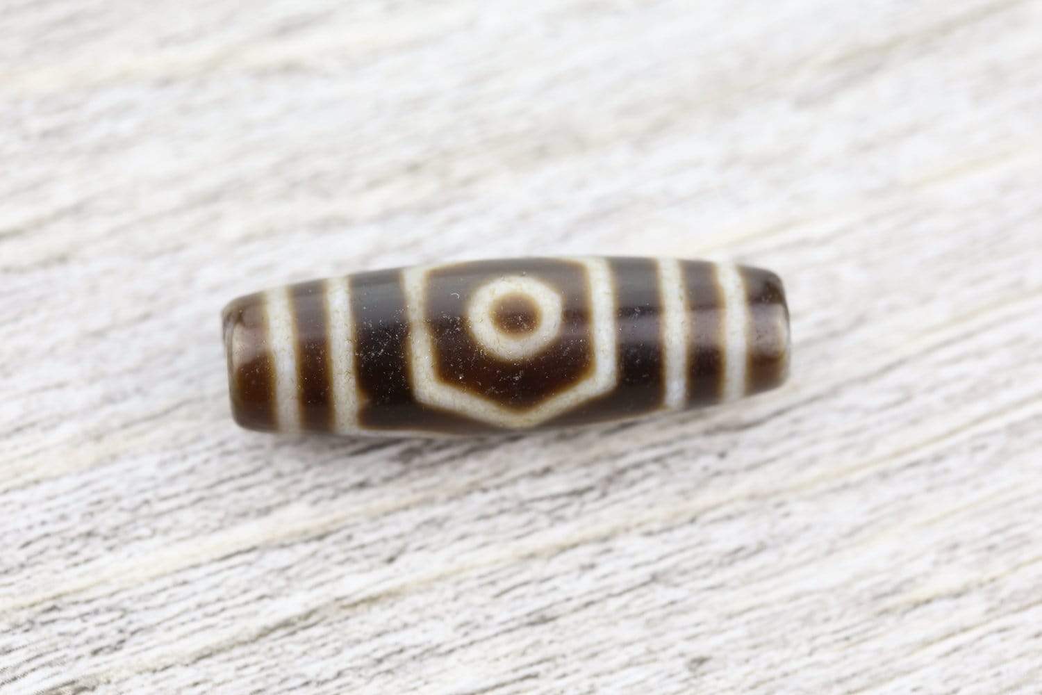 The three-eye Dzi is a popular design that is said to promote wealth, good health, success, compassion and glory. The three eyes represent the three stars of luck: happiness, honor and longevity.