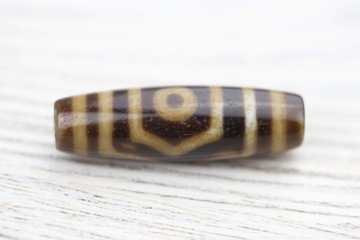The three-eye Dzi is a popular design that is said to promote wealth, good health, success, compassion and glory. The three eyes represent the three stars of luck: happiness, honor and longevity.