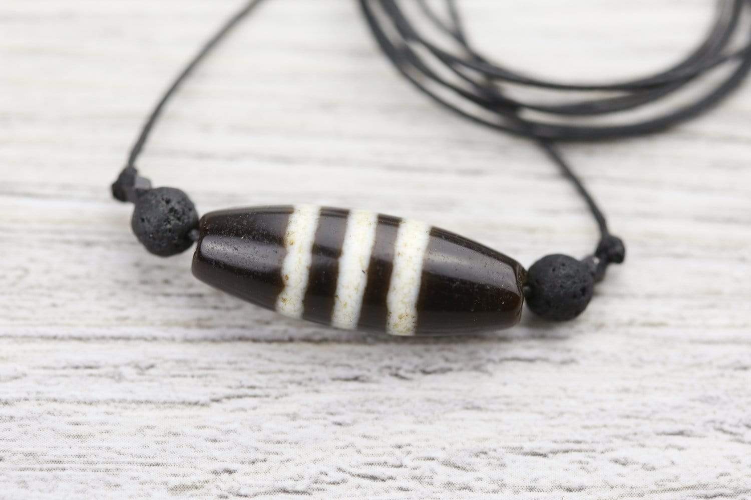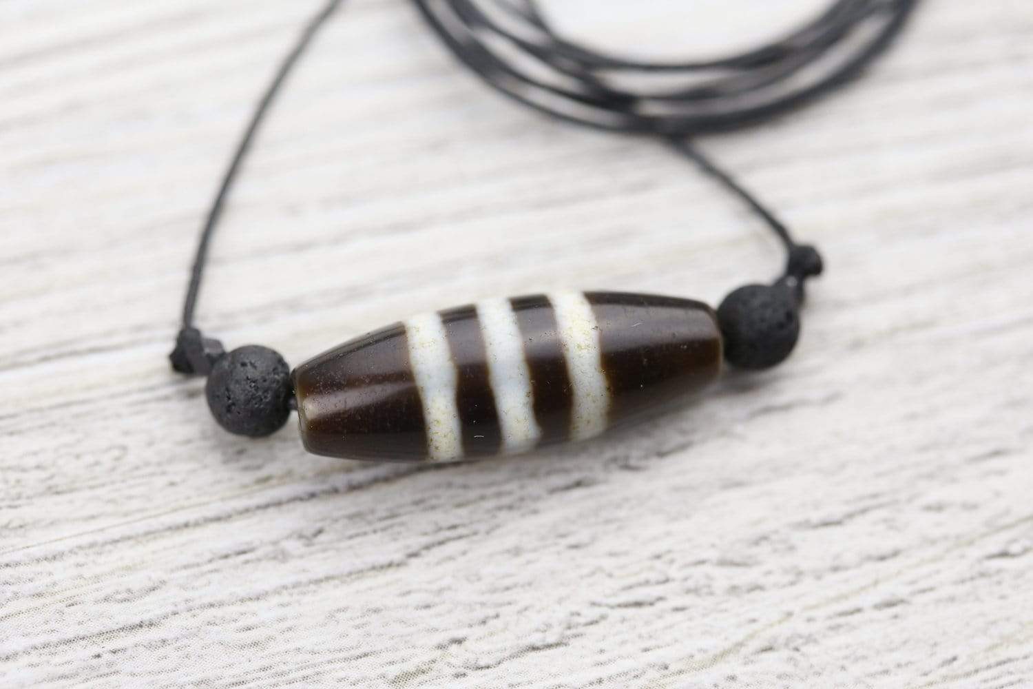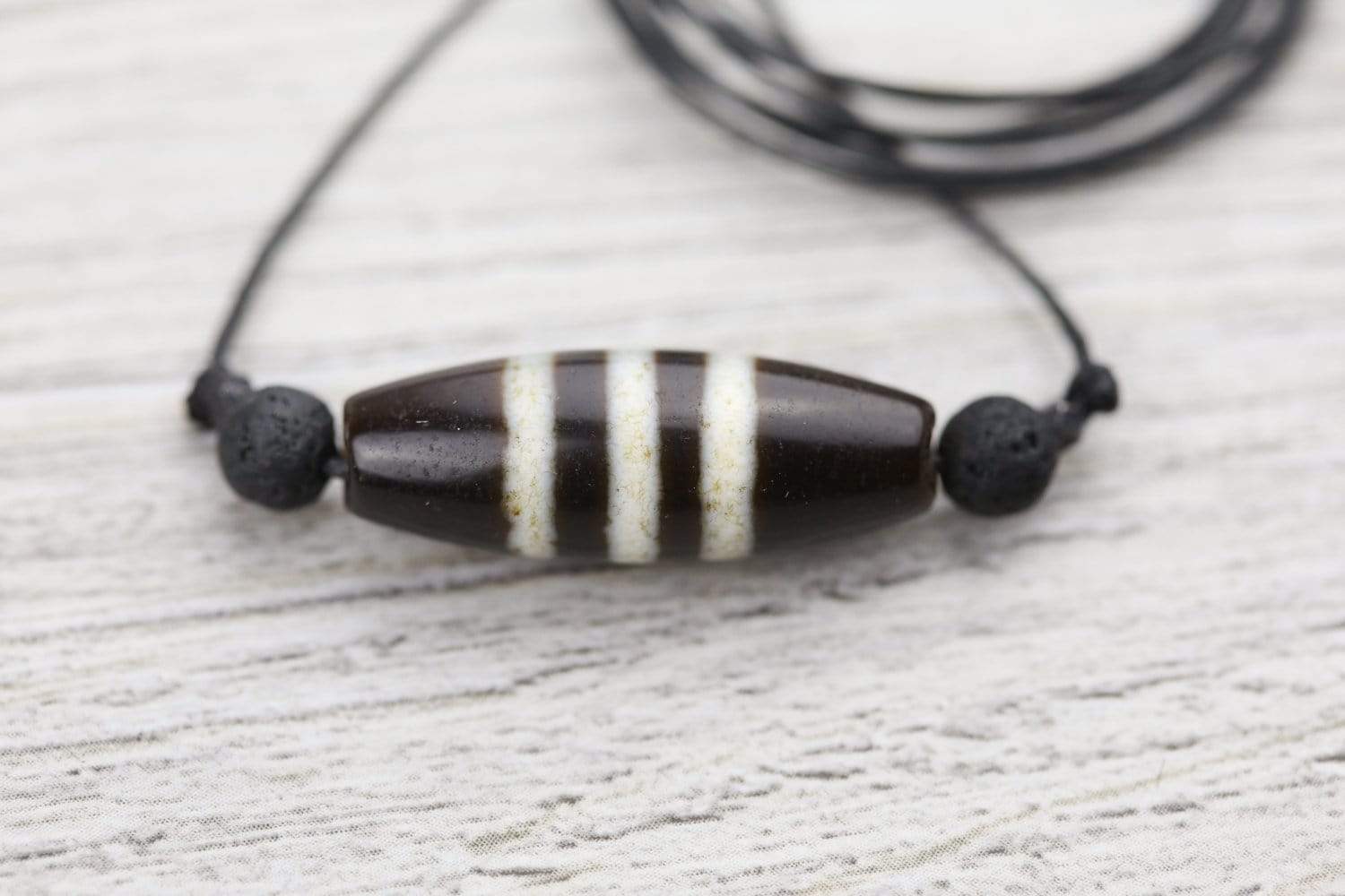 Dzi beads are believed to offer protection and prosperity to the wearer. The 3 stripe design represents multiple fortunes to be gained by the owner. If powered by love of ones self, this bead can offer a great journey.