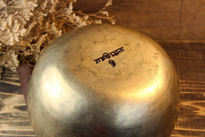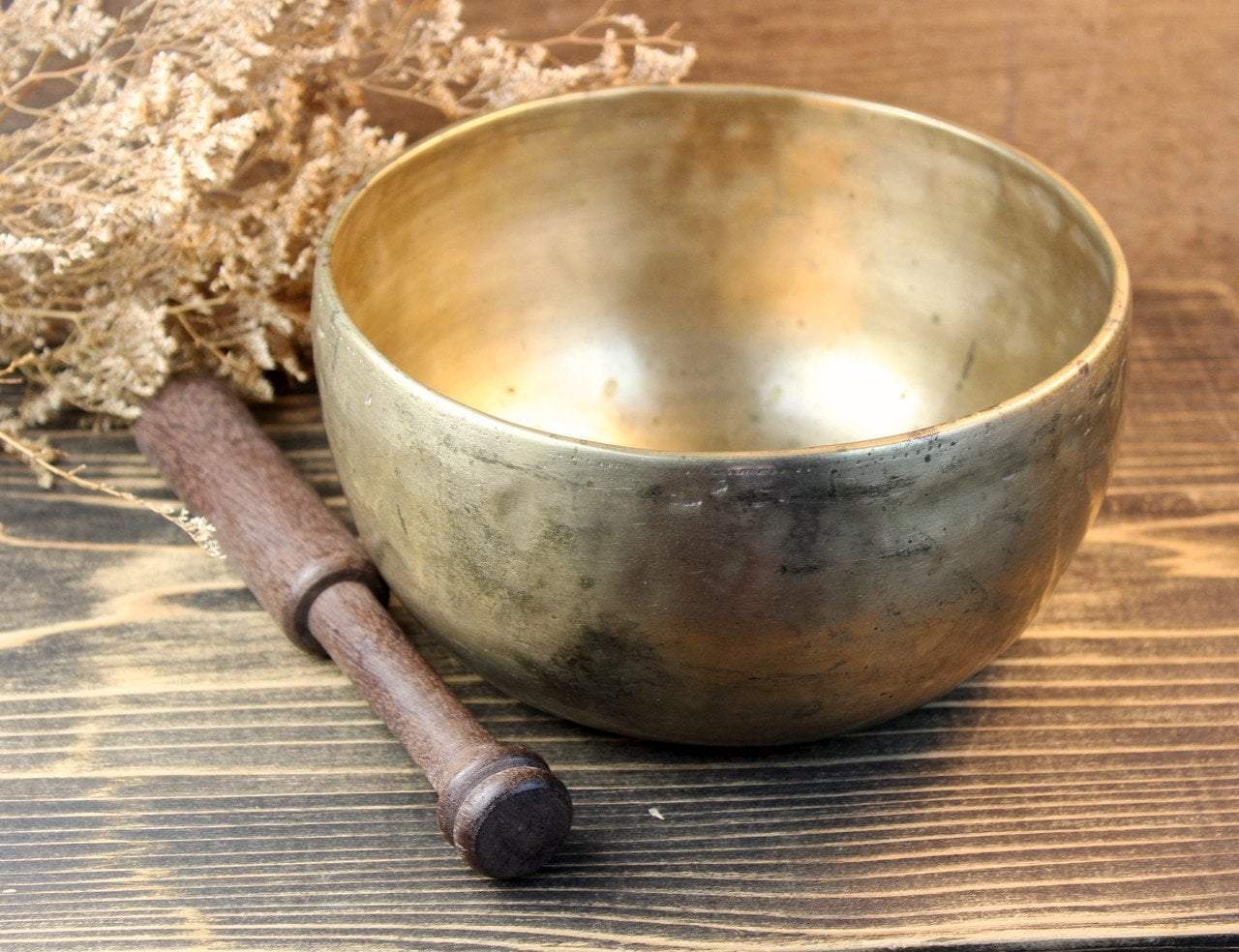 Bowl rings at a G tone when struck. This note resonates with the Throat Chakra. This chakra influences communication, dreaming, artistic expression, good judgment, self-belief, wisdom, and truthfulness. When the Throat Chakra is balanced, it allows for free communication, helping us to feel centered and happy. It also helps us to connect with our higher guidance during meditation.