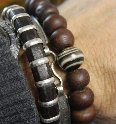 During a recent trip to Nepal, I bought a huge collection of beads.  These modern Tibetan agates are so sensational we decided to sell them strung on some of our older Bodhi seed beads.  The agate beads can vary slightly in color and design.