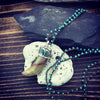 An amazing hand carved agate horn style pendant strung on a hand woven turquoise 30" chain