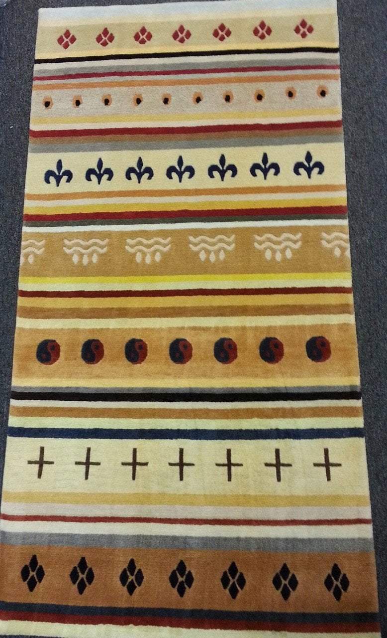 this rug is a traditional pattern and is one of a kind. 60 knots per square inch, Tibetan and new zealand wool mix with silk details. 4 by 6 foot