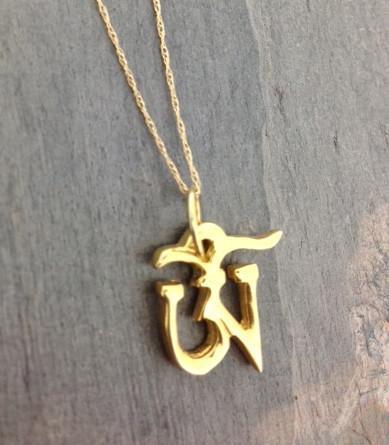 23 Carat gold-plated Tibetan Om pendant. 'Om' is a wonderful mantra to use when getting started in meditation. heavy solid sterling plated in gold in Thailand