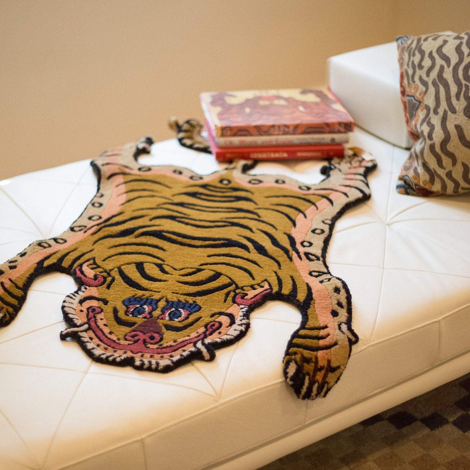 The tiger is known to symbolize unconditional confidence and disciplined awareness, kindness, and modesty. The tiger is associated with confidence, dominance over the forest, and the air element. Many Tibetans believe that meditating on a tiger carpet will protect you from negativity and enhance your meditation practice.
