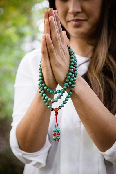 Mala measures approximately 37 inches around. Beads are 8mm, guru bead is 10mm. Handcrafted in Nepal.