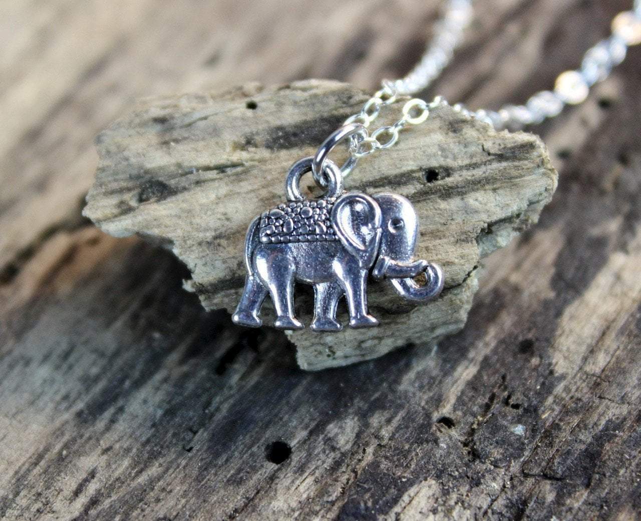 Tiny sterling silver elephant pendant on a sterling silver 18 inch flat chain.