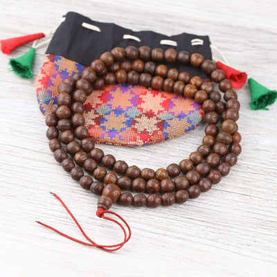 • Made of 108 small, well used dark bodhi beads.  Each bead is rich in color with a beautiful sheen.  Strung on red cord with long simple dangles in the traditional manner.  The stringing is slightly loose, making it great for counting mantras.