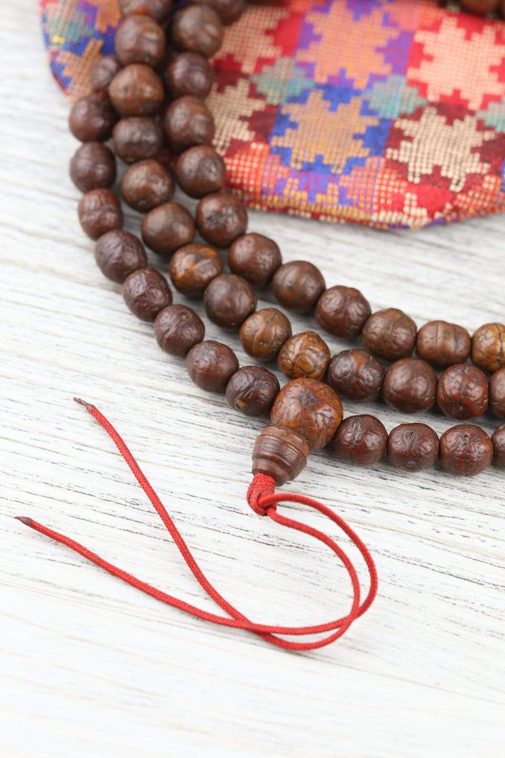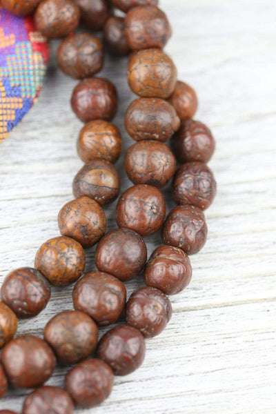 • These dark-speckled seed beads have special meaning for all seekers of divine wisdom.  "Bodhi" in Sanskrit means enlightenment; as an "enlightened" seed, many practitioners use these malas for their essence and inherent teachings within each seed.