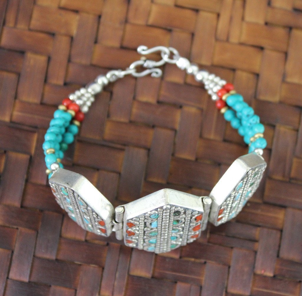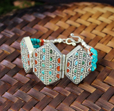 Just in from Kathmandu, Nepal where our jewelry makers have created some exceptional traditional style jewelry with turquoise and coral set in silver plated brass.