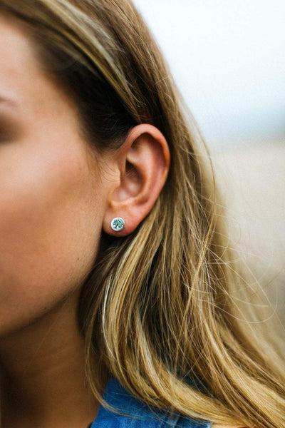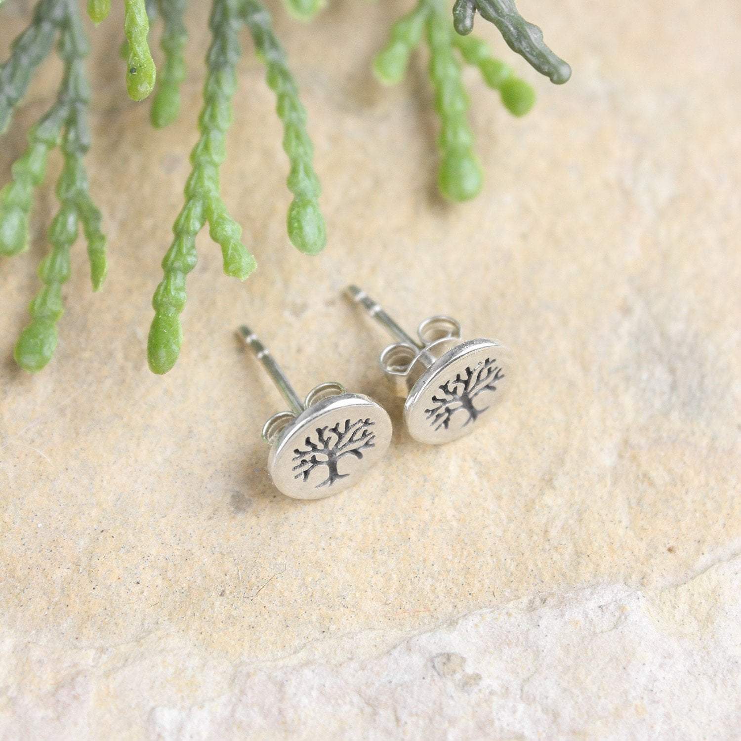 These dainty tree of life earrings are perfect for everyday wear. Made of sterling silver, they feature a simple design with a cute stamped tree of life symbol.