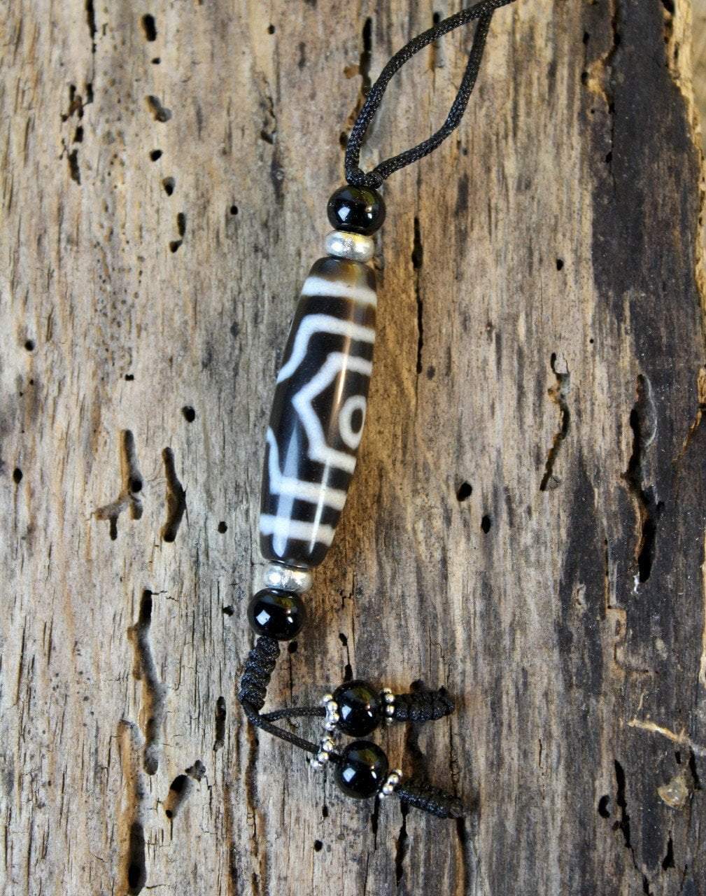 This one of a kind, true agate dzi bead is approximately 1 1/2 inches in length. Necklace adjustable up to 41 inches.