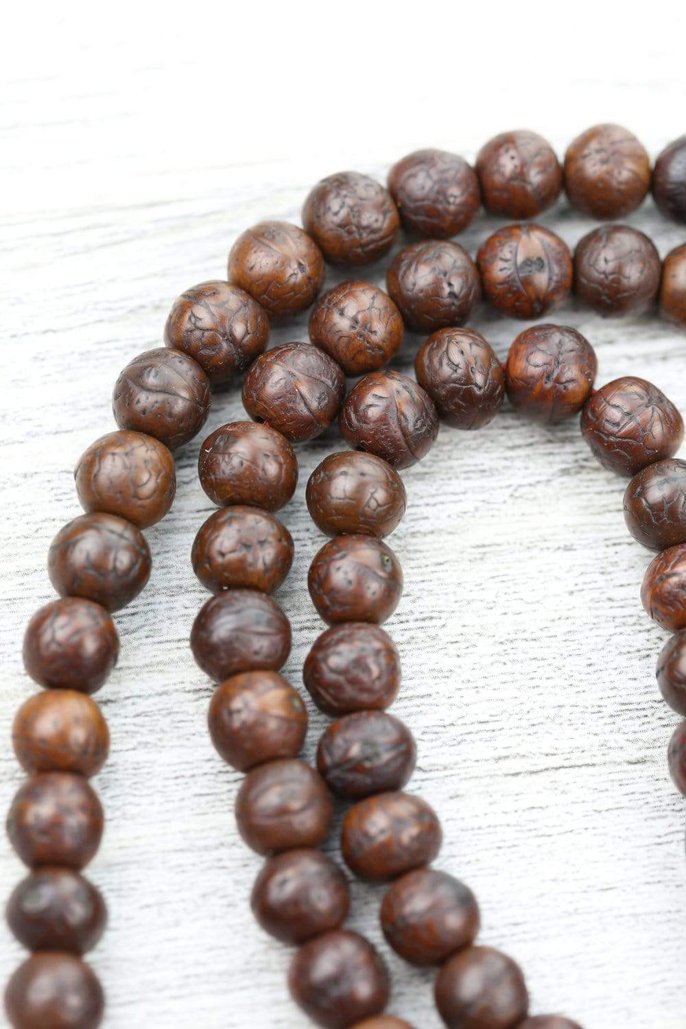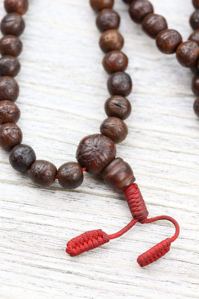 • These dark-speckled seed beads have special meaning for all seekers of divine wisdom.  "Bodhi" in Sanskrit means enlightenment; as an "enlightened" seed, many practitioners use these malas for their essence and inherent teachings within each seed.